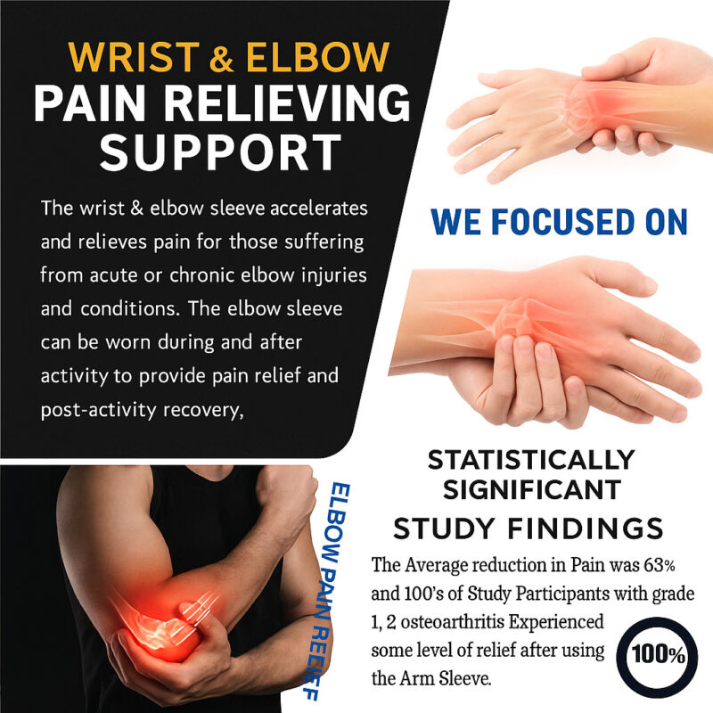 - 압박은 팔, 손목, 팔꿈치의 일반적인 통증을 완화시켜 줍니다.