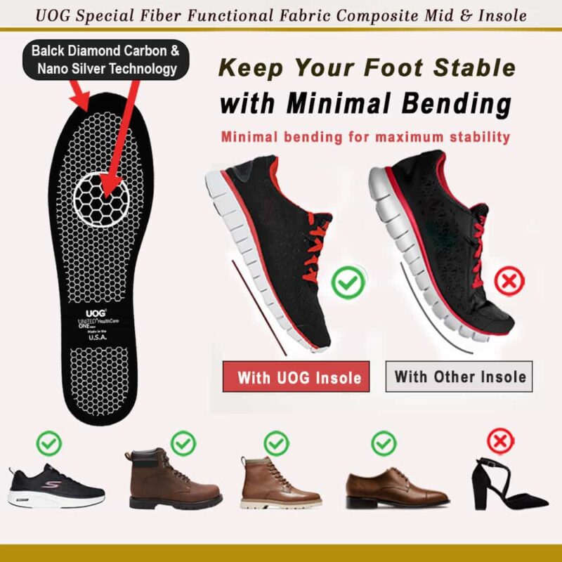UOG(United One) 내천공성 중창 및 깔창. CES 2026에서 세계 최초로 수상! 비금속, 비탄소 섬유 기능성 특수 섬유 소재 | 피로 방지 및 냄새 억제 | 유연하고 내구성 뛰어남 | ISO 22568-4:2021 EN 및 ASTM F2412-24 인증 | 작업화 및 축구, 야구, 소프트볼, 골프 등 스포츠화 | 더 빠르게 달리고, 더 높이 점프하고, 더 빨리 회복하고, 부상을 방지하세요 | 미국 제조